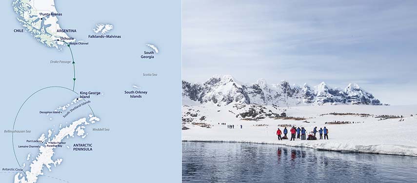 Day 01 | Arrival airport transfer and overnight in Punta Arenas Day 02 | Fly Punta Arenas to King George Island for embarkation Days 03-09 | Antarctic Peninsula Day 10-11 | Drake Passage Crossing Day 12 | Disembark Ushuaia