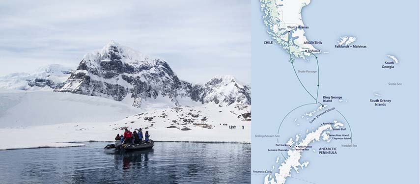 Day 01 | Arrival airport transfer and overnight in Punta Arenas Day 02 | Fly Punta Arenas to King George Island for embarkation Days 03-09 | Antarctic Peninsula Day 10-11 | Drake Passage Crossing Day 12 | Disembark Ushuaia
