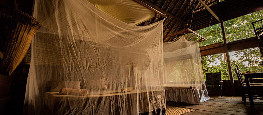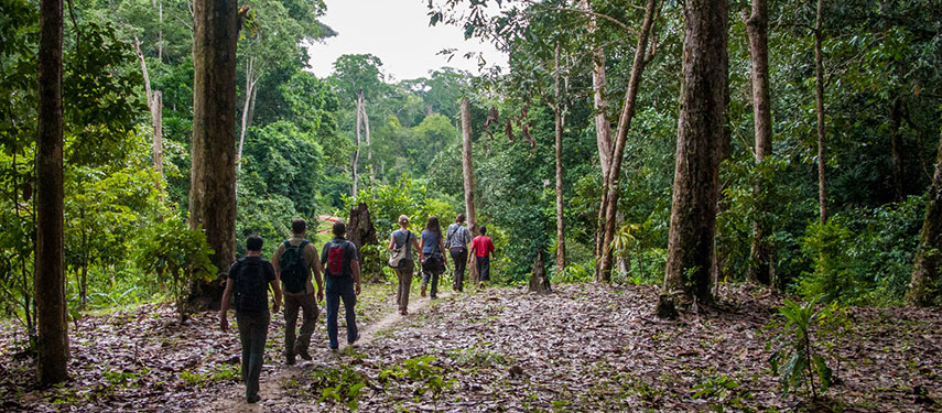 At Mboko Lodge, activities are a combination of walking, boating, and kayaking through some of the Congo Basin’s most beautiful habitats. Take a dip or cool your feet in the quiet, crystal streams found at Mboko. Relax on the river deck which offers a unique vantage point to look for birds, you may also see monkeys or flutters of butterflies while you enjoy the tranquillity of the river babbling past