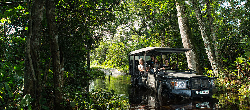 On arrival at the airstrip in Odzala-Kokoua the adventure begins with a safari drive (2-3 hours) through the park’s savanna and rainforest to your home for the next 4 nights, Ngaga Lodge.
