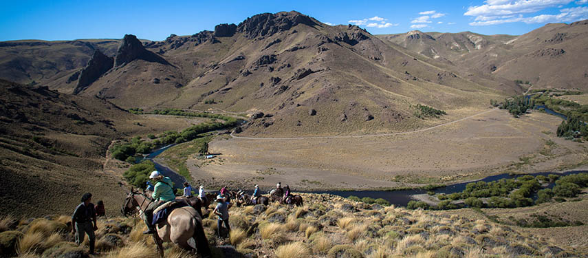 Enjoy a day of riding at the estancia with an asado lunch. Ride through the Huechahue stream, explore where the Andes rise and with the vastness of Patagonia before you.