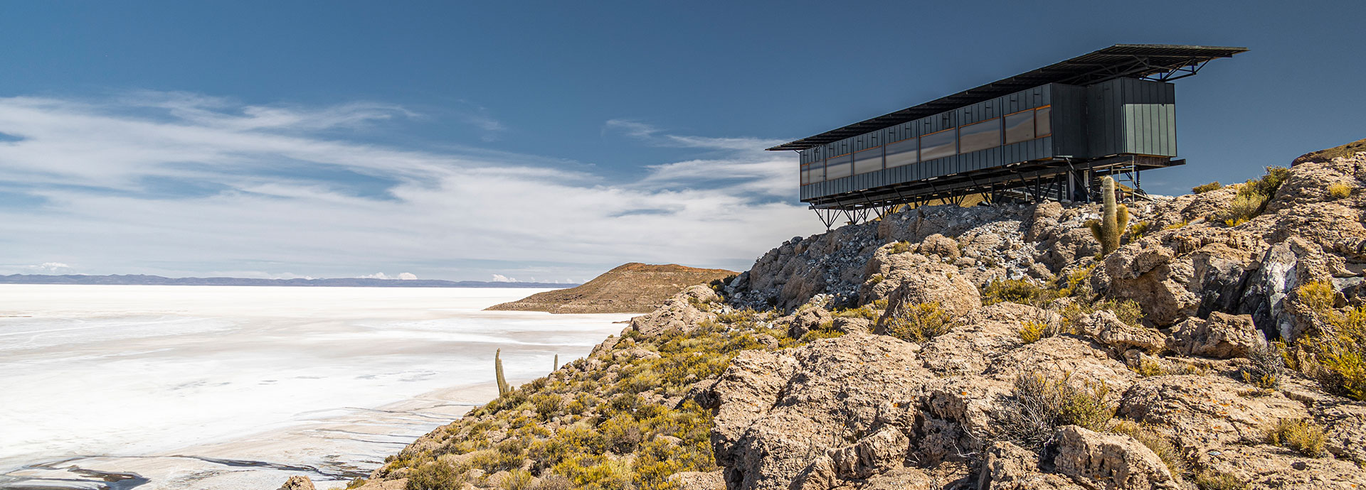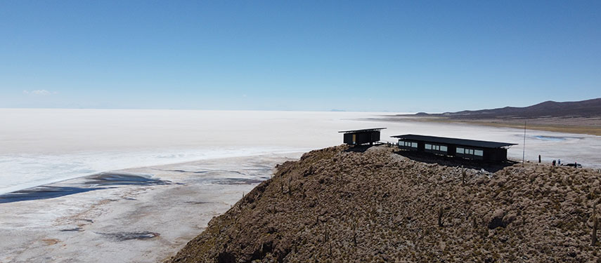 After breakfast, you’ll begin the day with an exploration of your choice—either through cactus forests and ancient terraces near the mountain home or to the historic village of San Pedro de Quemes with sweeping views of the Altiplano. The journey then continues to the Gruta de Las Galaxias, a cave of rare geological wonders, before the vast expanse of the Uyuni Salt Flats emerges on the horizon. At 3,665 metres above sea level, this is the world’s largest and highest-altitude salt flat, where you’ll enjoy a unique lunch and explore Fish Island before arriving at our lodge nestled at the base of the majestic Tunupa Volcano.