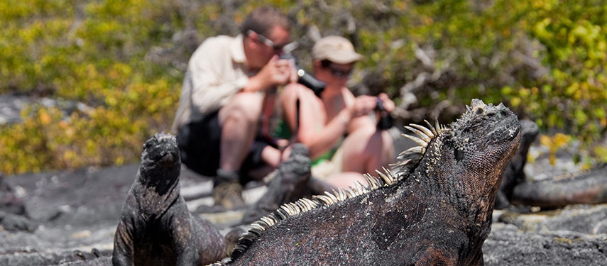 (AM) South Plaza Island: Home to one of the largest populations of land iguanas (PM) Santa Fe Island: A volcanic uplift that hosts a forest of Opuntia and Palo Santo. Endemic land iguanas are often seen.