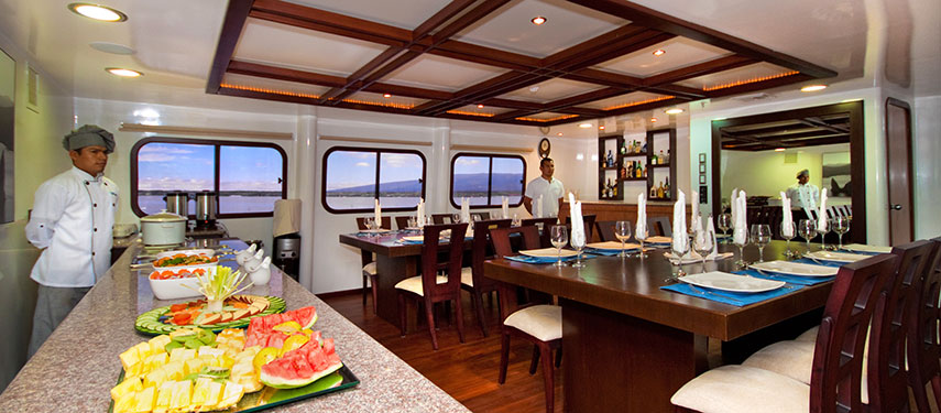 M/C Cormorant has snorkelling gear and wetsuits available for the duration of your cruise, as well as are kayaks for further exploring the Galápagos Islands off the ship. Daily excursions with naturalist guides include hikes to view points and on beaches. Beach towels are provided for use on the deck and onshore. Galápagos Island cruises range from 4 to 15 days in duration. The cruises showcase a variety of wildlife and landscapes with each island in the archipelago offering different experiences.