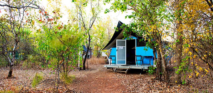 Hawk Dreaming Wilderness Lodge is located in an exclusive and restricted area of Kakadu National Park, an extremely special and justifiably renowned part of Kakadu, known as Cannon Hill. The area is abundant in wildlife, especially bird and marine life, and is where Kakadu’s diverse landscape elements come together. Cannon Hill is a registered sacred site with the sandstone outliers around Cannon Hill hosting significant rock art dating back many thousands of years. The lodge is owned and managed by the traditional land owners and features just 12 ensuite safari tents complete with comfortable twin beds with crisp linen, a light, fan, bedside table and a small verandah. We are warmly welcomed into camp by our hosts before travelling to a stunning sandstone escarpment to watch our first spectacular sunset over the wetlands. We will return to camp for a delicious evening meal, accompanied by fine wine, beneath a blanket of stars before retiring to the comfort of our tented safari cabin in preparation for our heart warming cultural immersion in the days ahead.
