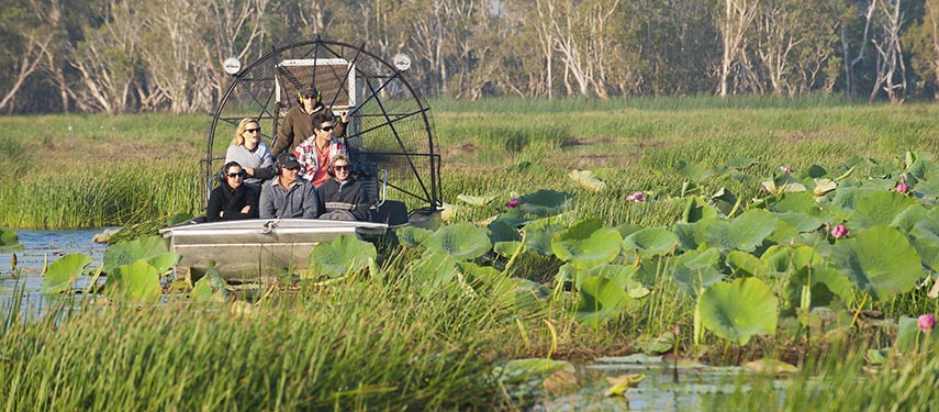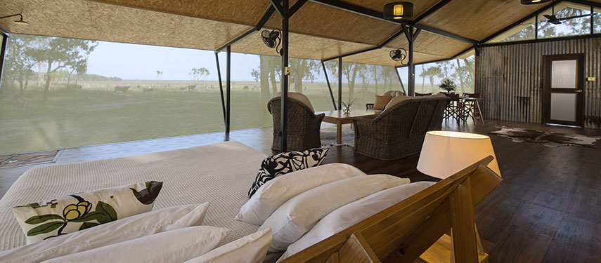 Transfer to the stunning wilderness lodge, Bamurru Plains, on the edge of the Mary River floodplains.  Explore this region of exceptional natural beauty and unique biodiversity on an airboat skimming through a wilderness of clear water and tall grass, or on a 4WD adventure or walking safari through the savannah searching for wallabies, buffalos and dingos in the company of an expert guide. Return to the lodge each night for gourmet dining and pure bush luxury.