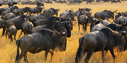 Second moving day – head west across the Mara plains and reach the Mara River on the Park boundary. Hopefully ford the river (unless in complete flood) at one of the famous wildebeest crossings and then head south-west across the Mara Triangle for a picnic lunch before ascending the Soit Olololol Escarpment to reach the camp in a forest glade overlooking the whole Mara ecosystem.