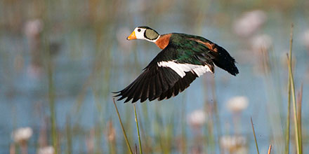 Next, your journey moves further North up the Kweene River system into the seasonal swamp habitat; here the river receives water – normally – on a yearly basis with the inundation cycle of the annual Okavango flood dynamic. This section of the river is an expose of exceptional Okavango Delta scenery and its wildlife; endless floodplains with well-wooded islands dotting the plains and year-round surface water drawing in an abundance of wildlife.