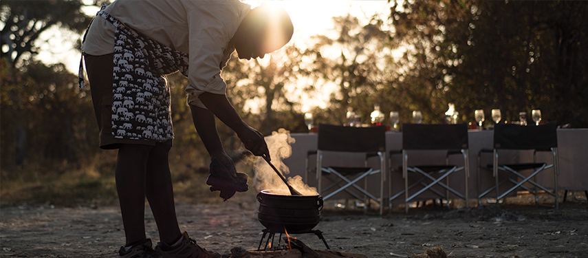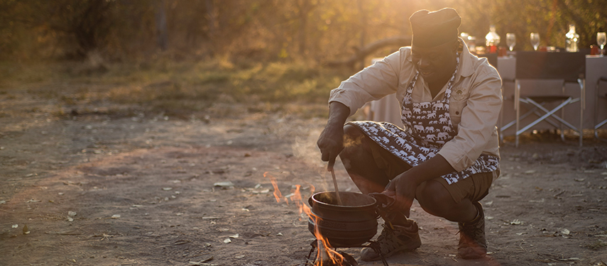 When it comes to dining the key focus is on fresh, healthy food all cooked on an open fire. The menu changes with the seasons and depends entirely on what is fresh and available in Maun. The chefs are masters of their trade and you will be astonished by the variety and quality of the food produced from the simple bush kitchen. Needless to say, meals are rounded off with some of South Africa’s top wines.