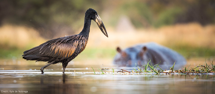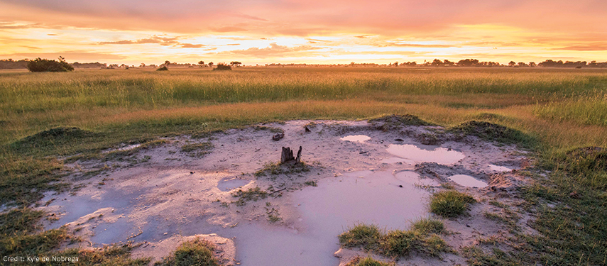 Your journey starts along the Southern section of the Kweene River in the occasional swamp habitat that has a much more arid feel to the landscape. However, as the floodplains are inundated with water less frequently than the seasonal swamp, the grass species that dominate the floodplains are much more palatable and thus productive, supporting large herds of grazers and the predators that follow.