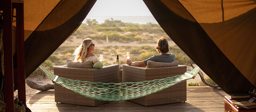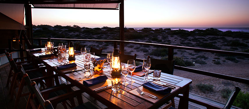 Here you wake to the song of a butcher bird, the raucous squawks of a galah or the thump of a wallaroo passing by. Fill your days however you choose, relax in your tent’s hammock and watch the world go by, or laze on the beach and paddle in the warm Indian Ocean waters. The most popular experiences are in the water, as here on the Ningaloo Reef you can swim alongside the majestic whale sharks and the magnificent humpback whales. Right off the shores of Sal Salis, you will have access to the UNESCO World Heritage listed Ningaloo Reef where you will find more than 500 species of colourful fish, 250 coral species, rays and turtles.