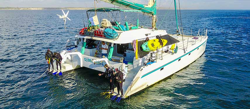 A journey on board ‘Shore Thing’ is an exclusive small group experience, offering an opportunity to explore one of the world’s most exciting, remote and pristine coral reef systems. A passionate, professional and experienced crew will provide the highest quality personal service ensuring you receive the adventurous getaway or the relaxing escape that you desire. Sail Ningaloo offers quality gourmet meals freshly prepared on board, accommodation in comfortable, spacious cabins and guided activities are available such as snorkelling, scuba diving, kayaking and eco-fishing, with the only additional costs being any alcohol purchased on board and dive hire equipment (if required).