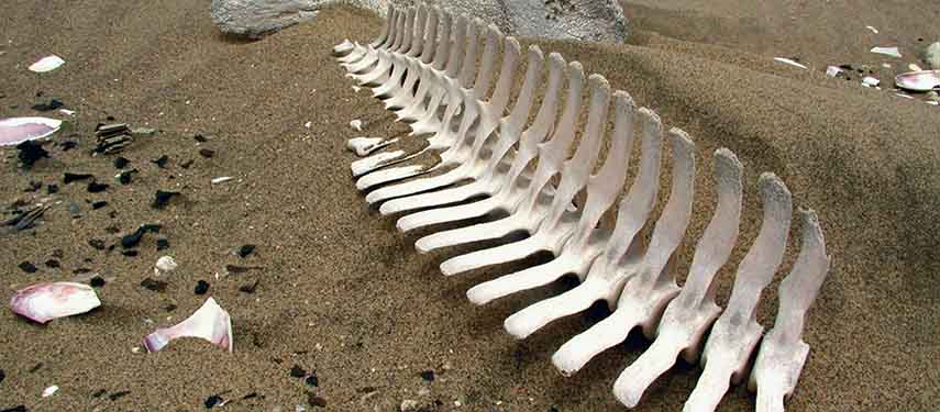 A plane lands near the bones of a dead animal for closer examination on a Skeleton Coast Safari