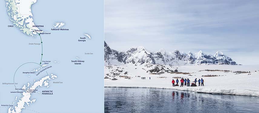Day 1 | Arrival airport transfer and overnight in Ushuaia Day 2 | Embarkation Day Day 3 | Drake Passage crossing Day 4 | Drake Passage & South Shetland Islands Days 5-9 | Antarctic Peninsula Days 10 -11 | Drake Passage crossing Day 12 | Disembark Ushuaia
