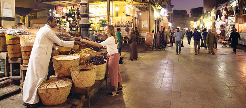 Disembark from your Nile cruise boat and check in to the famous Sofitel Winter Palace & Spa where you have the day at leisure on solid ground. Swim in the pool, indulge in the spa and later wander through the markets close to the hotel. The market is a bustling hive of activity at dusk and your guide is on hand to lead you through.