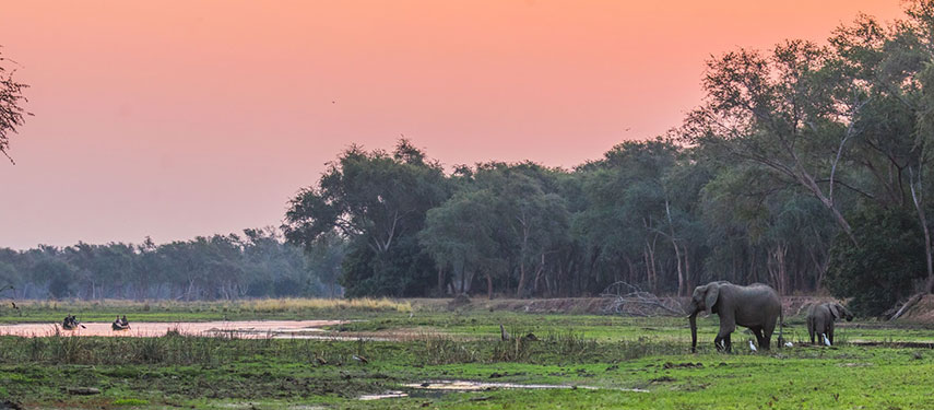 After breakfast, bid farewell to Kutali as you set out on a short transfer deeper into the park. Crossing the channels of the Zambezi, you’ll arrive at Chula Island Camp, your base for the next three nights. This secluded island setting offers a more adventurous atmosphere, where the camp blends seamlessly into its wild surroundings. After settling in, enjoy lunch and time to relax before an afternoon activity – perhaps a boat safari to explore the surrounding waterways or a guided walk across the island itself. As the sun dips below the horizon, gather for sundowners before dinner in this truly wild setting.