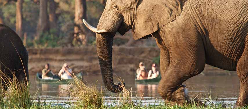 Enjoy a canoeing safari in search of local wildlife, like elephants, with Tusk and Mane