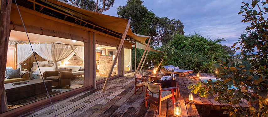 This opulent tented camp offers direct access to river activities, including fishing, canoeing and sunset boat cruises, but also to the surrounding forested terrain.