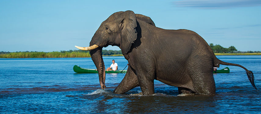 For those seeking a more wildlife-oriented stay, take a four-wheel drive vehicle into Zambezi National Park and the serene Mpala Jena to begin the adventure with a safari immersion. Settle in to camp and then enjoy a host of activities including game drives, canoeing, birding, walking and boating.