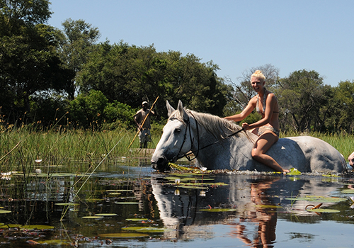 Riding with elephant, giraffe or zebra and splashing through the sparkling flood plains contribute to the ultimate African adventure. Qualified guides will share with you their intimate knowledge of the Okavango Delta - the largest inland delta in the world - using the horses to best effect to bring you closer to birds, game and nature....Read More