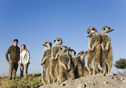Spend time amongst Meerkats in Makgadikgadi Salt Pans as they scurry around you and perhaps even climb on top of your head to gain a better vantage point is a truly unique experience.