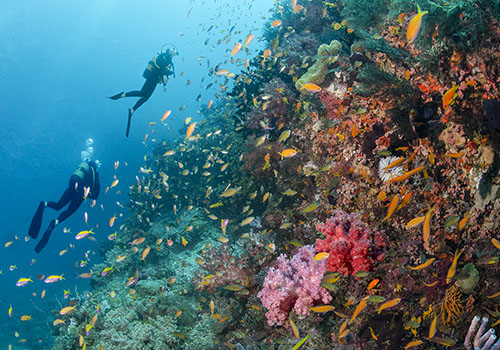 Scuba dive on the bountiful coral reefs