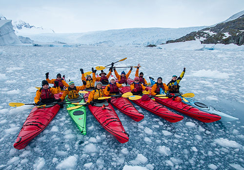 Experience Antarctica from the unique vantage point of a sea kayak! The majestic landscape engulfs you, the icebergs tower overhead, and the wildlife is unafraid as you silently drift past. Your senses are amplified, and everythin...