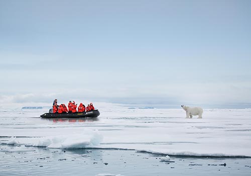 The Arctic Circle is the ‘kingdom of the polar bear’ – a spectacular wilderness of glaciers, mountains, fjords and breathtaking icebergs. This region of the planet, north of an ever-shifting latitudinal line of roughly 66º30’N – is best explored by expeditionary cruise ship. From the moment you throw the lines and start your voyage you are in the land of the polar bear, beluga whale, walrus and reindeer. The Arctic is also home to the rich and unique culture of the Inuit people, who have survived in this harsh landscape for over 9,000 years.